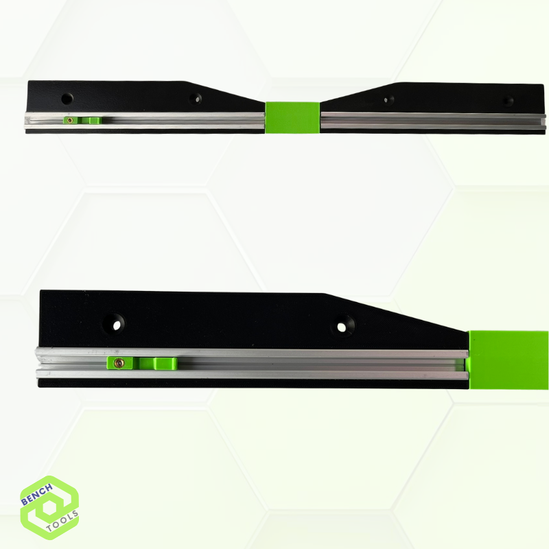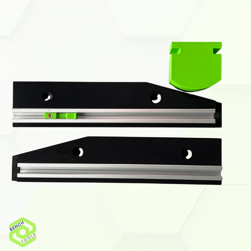 Het voordeel is dat deze aanslag is uitgevoerd met een aluminium rail waarin niet alleen je zero clearance blok maar ook bijvoorbeeld een diepte aanslag kan monteren.